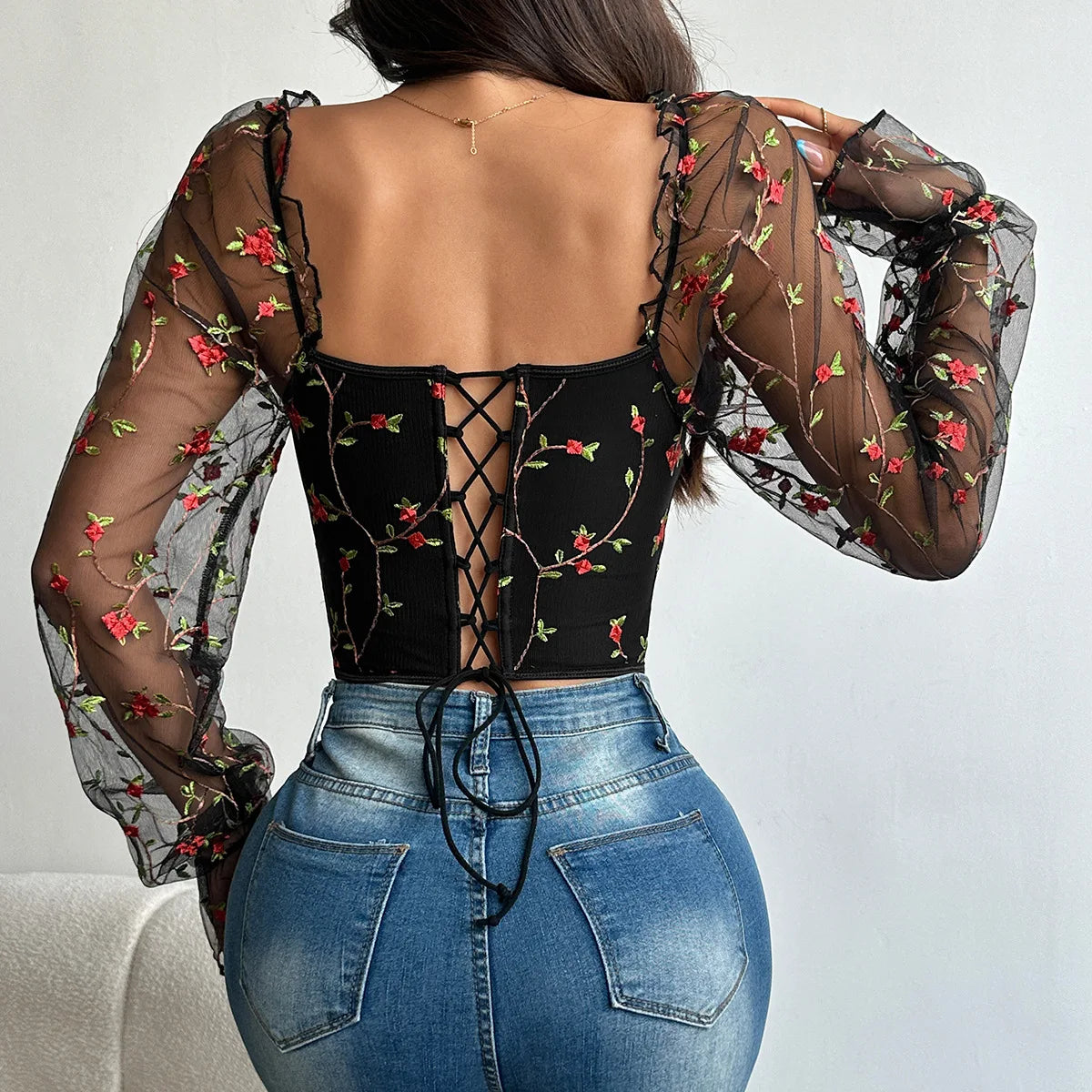 Flower Embroidery Lace Bustier