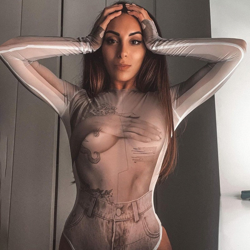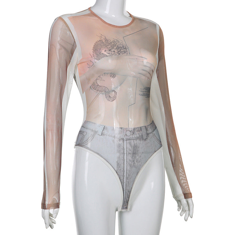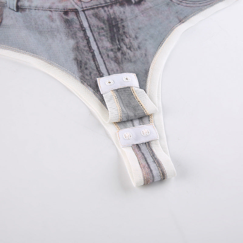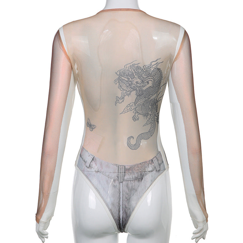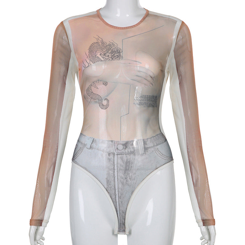 With a daring print design, this long-sleeved bodysuit is a fun and daring addition to any woman's wardrobe. Made from a soft and stretchy material, this garment is perfect for wear during the summer.