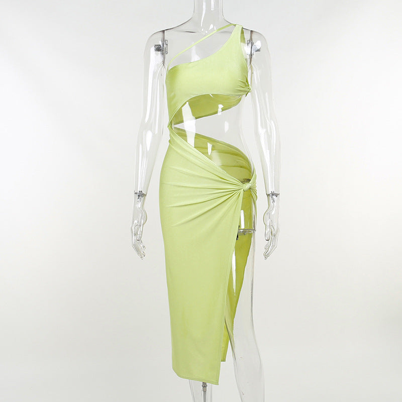 This chic midi-length dress is designed to fit and flatter every figure. It features a sophisticated one-shoulder neckline with a flirty hollowed-out design. The midi-length of the dress will ensure she can be comfortable and look elegant no matter where she goes.