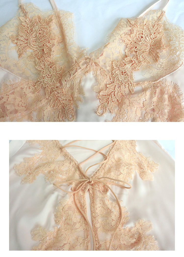 Spandex Lace Nightdress with Spaghetti Strap and Floral Borders