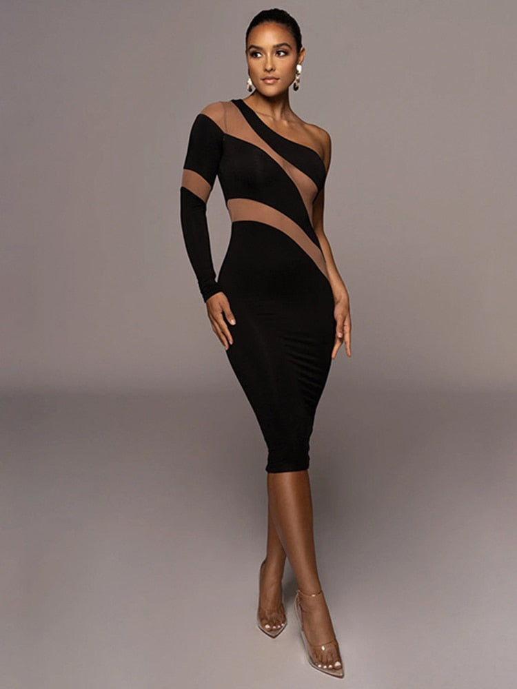 This stunning one-shoulder dress has been crafted from a chic polyester blend that is perfect for the office. The cinched waistline gives the silhouette a polished edge. This midi-length dress looks great with a pair of heels and pumps to add a dramatic touch.