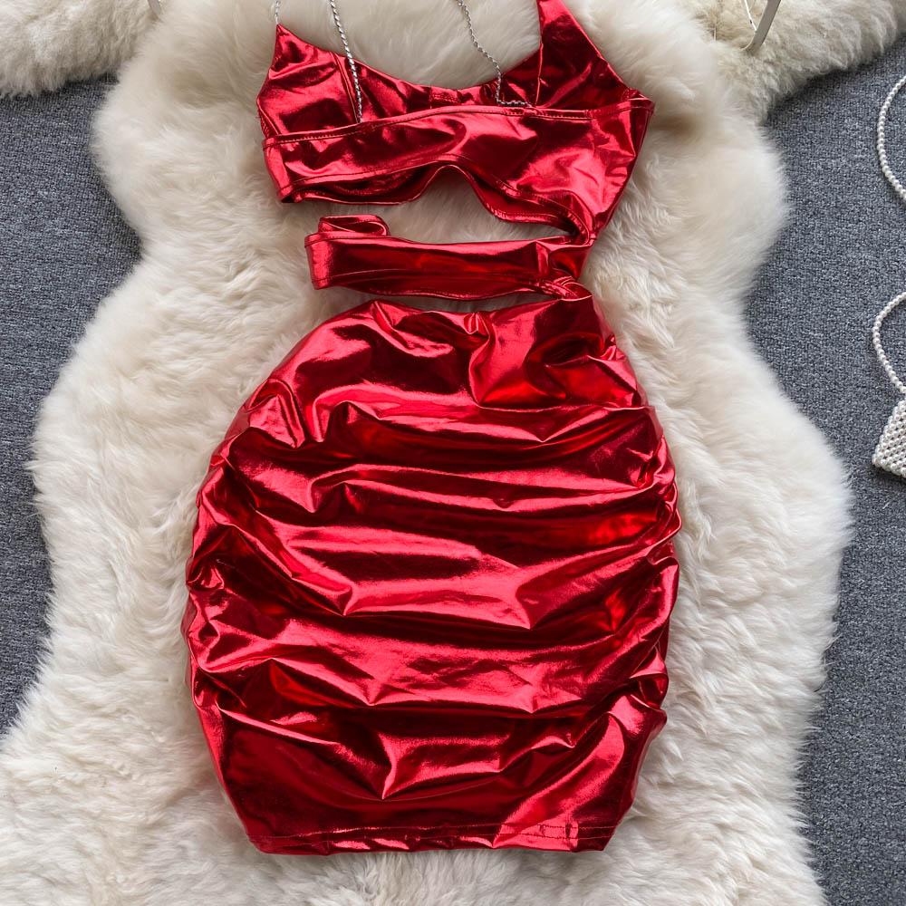 This sexy and stylish dress is the perfect choice for any occasion. The light and airy fabric makes it comfortable and ideal for a night out on the town. The ruched design adds a playful twist to the classic look. This short mini length is a great way to show off some skin while remaining stylish and high-fashion. The rhinestone embellishment adds a touch of glamour to your wardrobe.
