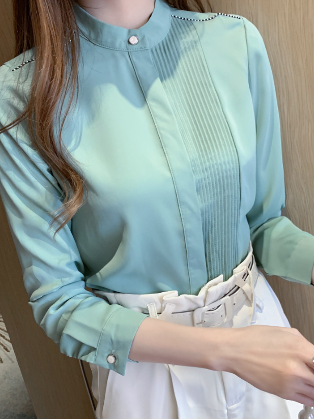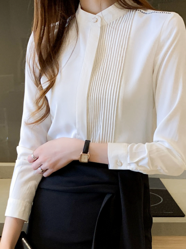 These beautifully tailored blouses are a great choice for any occasion. The simple but stylish design is a must-have for any wardrobe. The stand collar style adds a professional look and the pleated style also adds a modern edge that is sure to make heads turn. The light material is perfect for warm summer days.