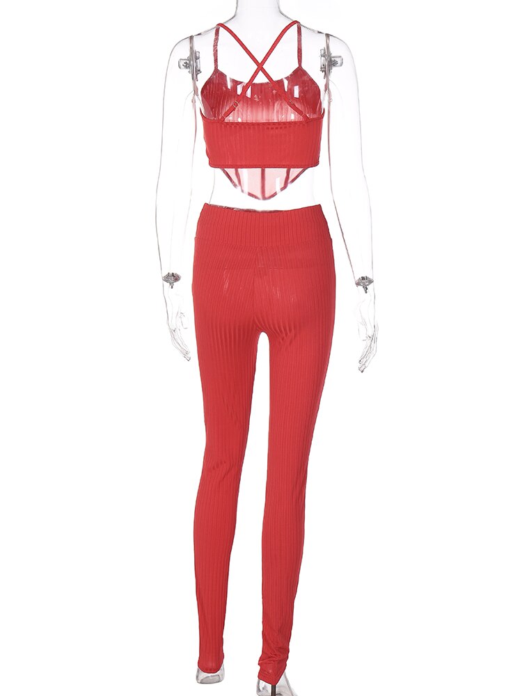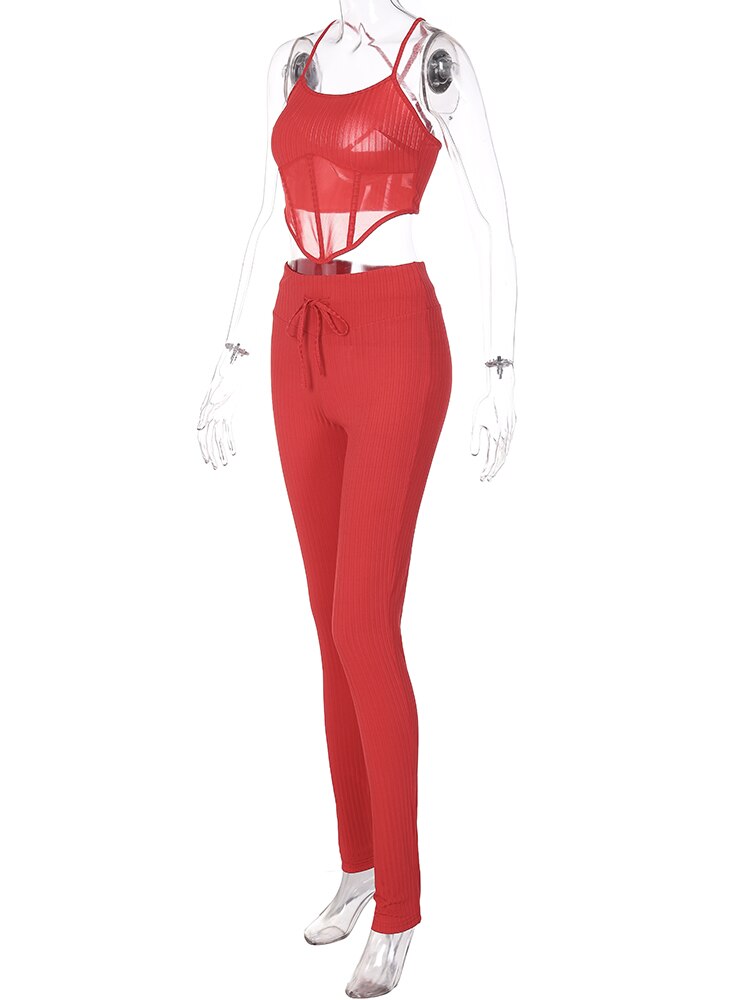 The best way to stay cool this summer is with the latest trends in women's fashion. This trendy crop top and fitting pencil pant set is a versatile option that looks great with any outfit. The lightweight polyester blend fabric keeps her looking and feeling her best.