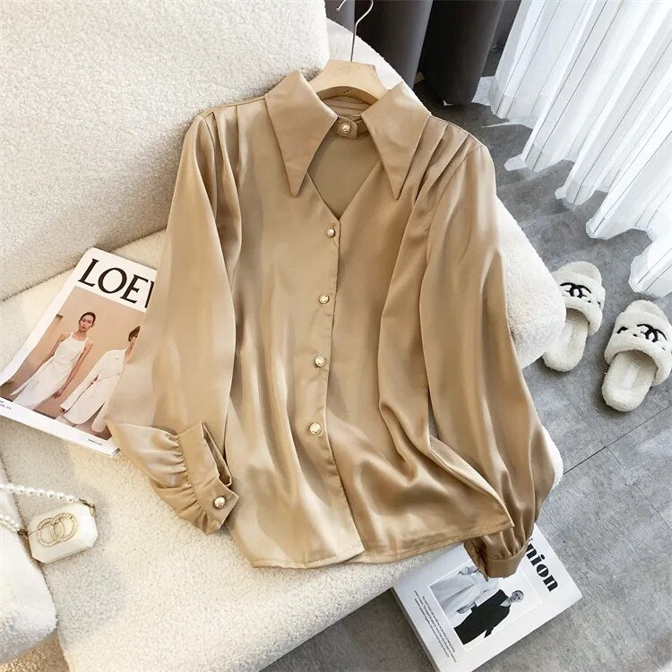 This shirt is crafted from solid-colored polyester and features a classic v-neckline with a single-hole detail. The lightweight fabric is soft and comfortable, perfect for everyday wear.