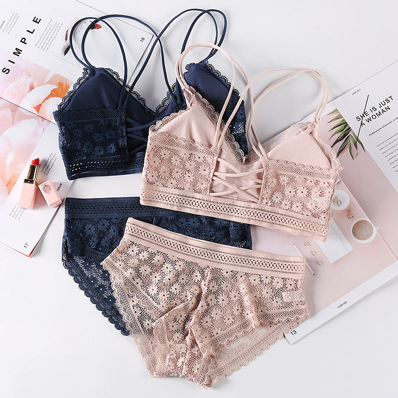 Flower Pattern Padded Seamless Bra and Pantie Sets with Cotton Material