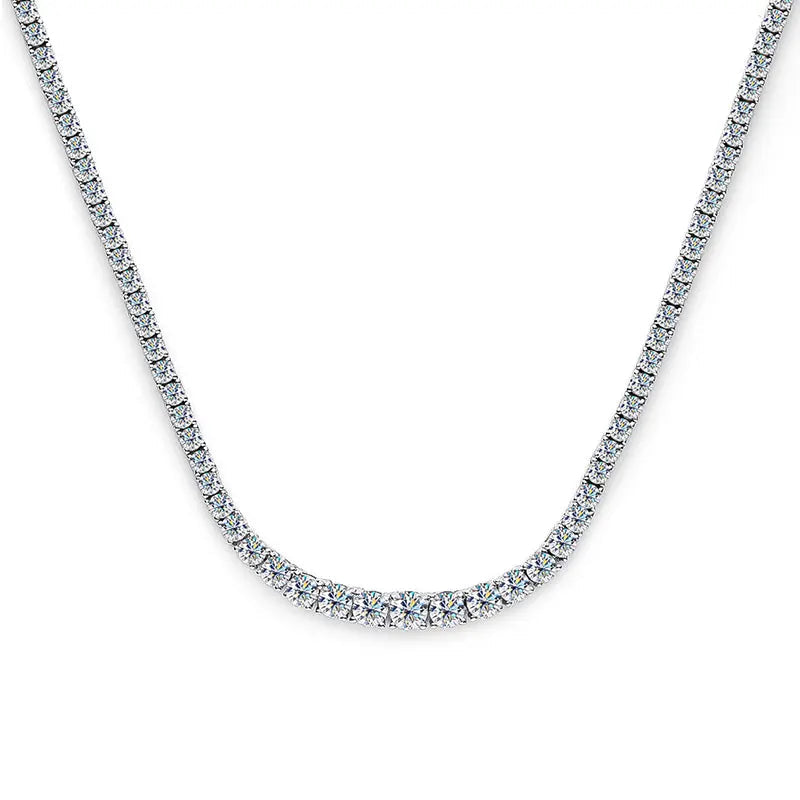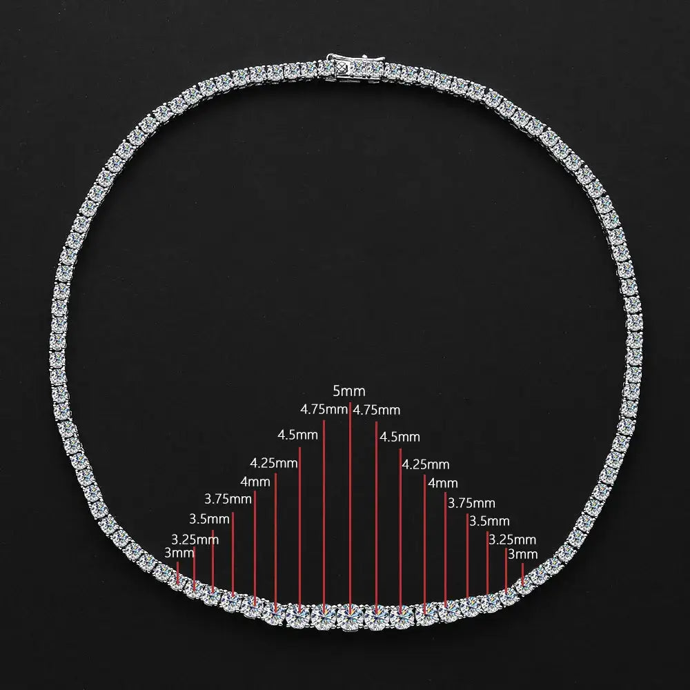The Kisses on Cheeks Tennis Necklace shines with brilliant moissanite stones set in lustrous 925 sterling silver. This daring piece combines sparkling elegance with bold sophistication, perfect for making a striking impression at any event. Elevate your style with a necklace that commands attention and captures every gaze.