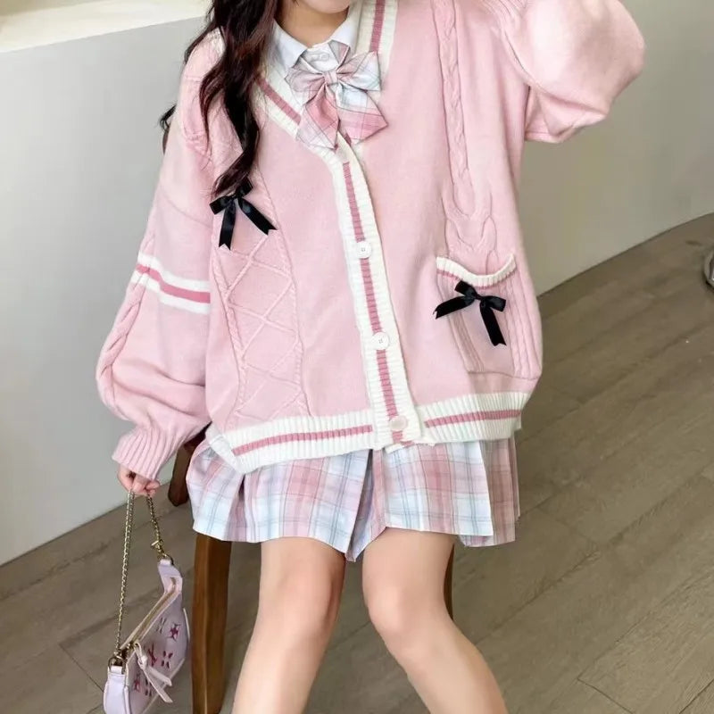 Transform your wardrobe with our Dream Weaver Cardigan! Its unique geometric pattern adds a touch of modern flair while the loose fit provides maximum comfort. The thick fabric and long sleeves will keep you warm and cozy during chilly days. Complete the look with the delicate bow decoration.
