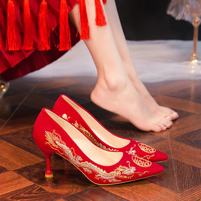 Elevate your style with Silent Storm Pump Shoes! These pointed toe pumps feature intricate embroidery, making them a unique fashion statement. Whether you prefer a thin or thick heel, these pumps are versatile and can be dressed up or down.