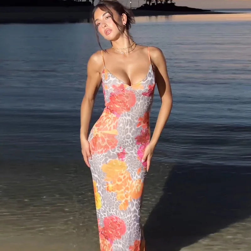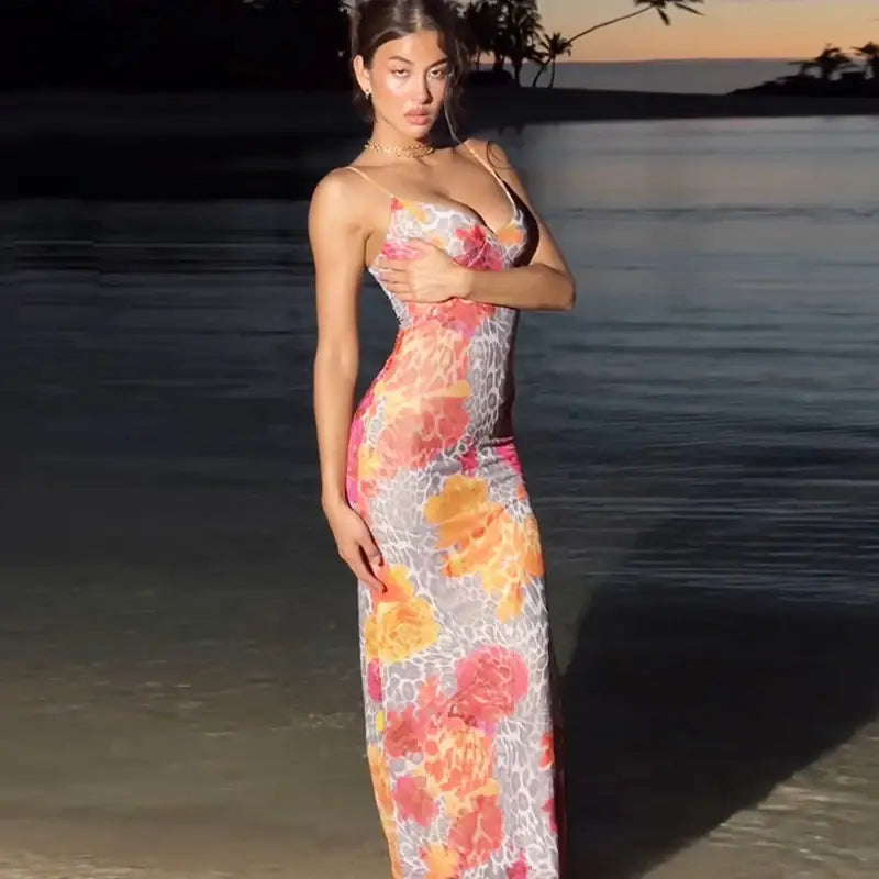 Experience a new level of elegance and comfort with our maxi dress! With its stunning printed design and polyester and spandex blend, this dress will make you stand out in any crowd. The backless feature makes it perfect for any special occasion.