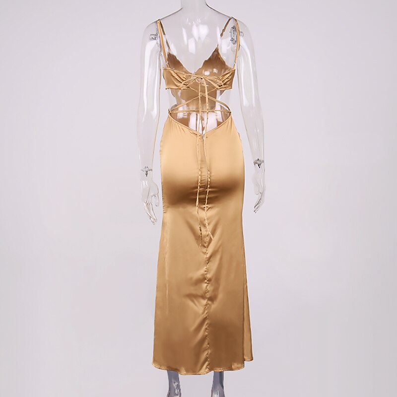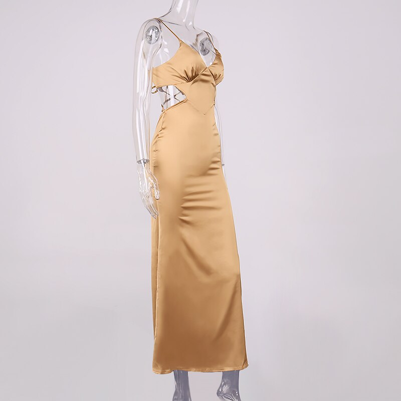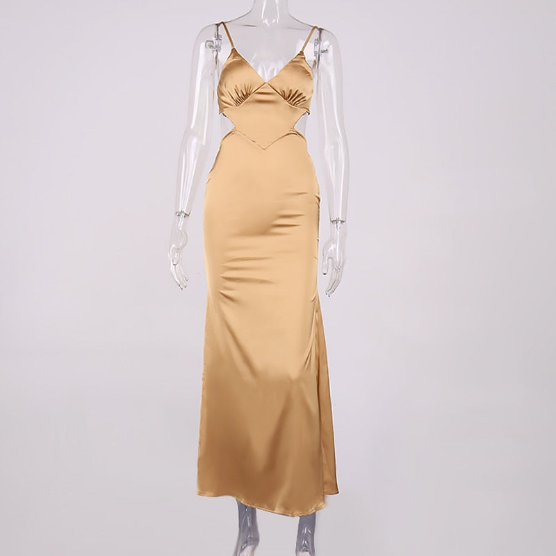 Backless Spaghetti Strap V-Neck Maxi Dress with Zipper Closure