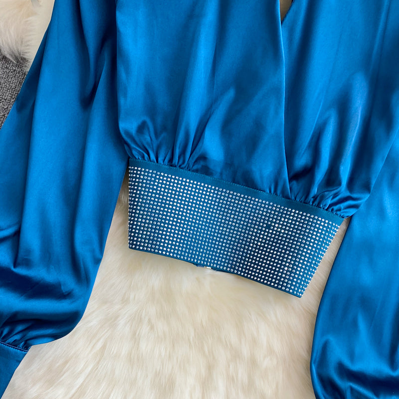 This beautiful, sleeveless blouse is perfect for the woman who likes to dress up and look her best. Made of chiffon, it has a classic, elegant style that looks great with a variety of different styles. The solid color will work with just about any color skirt or pants, and the rhinestone decoration adds a touch of glamour.