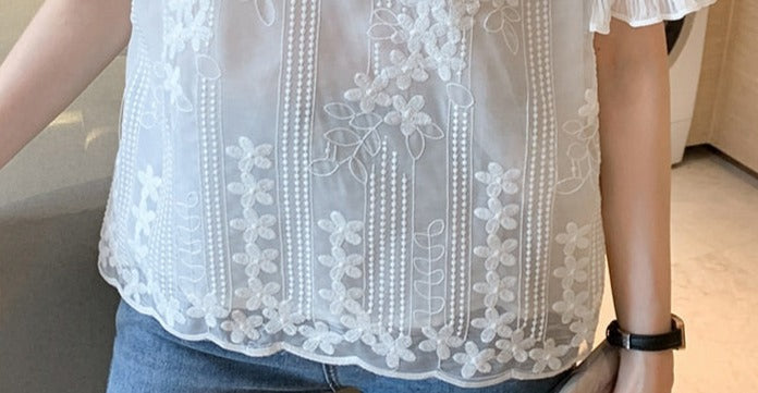 This pretty chiffon blouse is the perfect combination of style and comfort. The simple yet feminine floral pattern will look great with anything from jeans to skirts. The short sleeves are perfect for those hot summer days and the soft chiffon material is the perfect choice for all-day comfort.