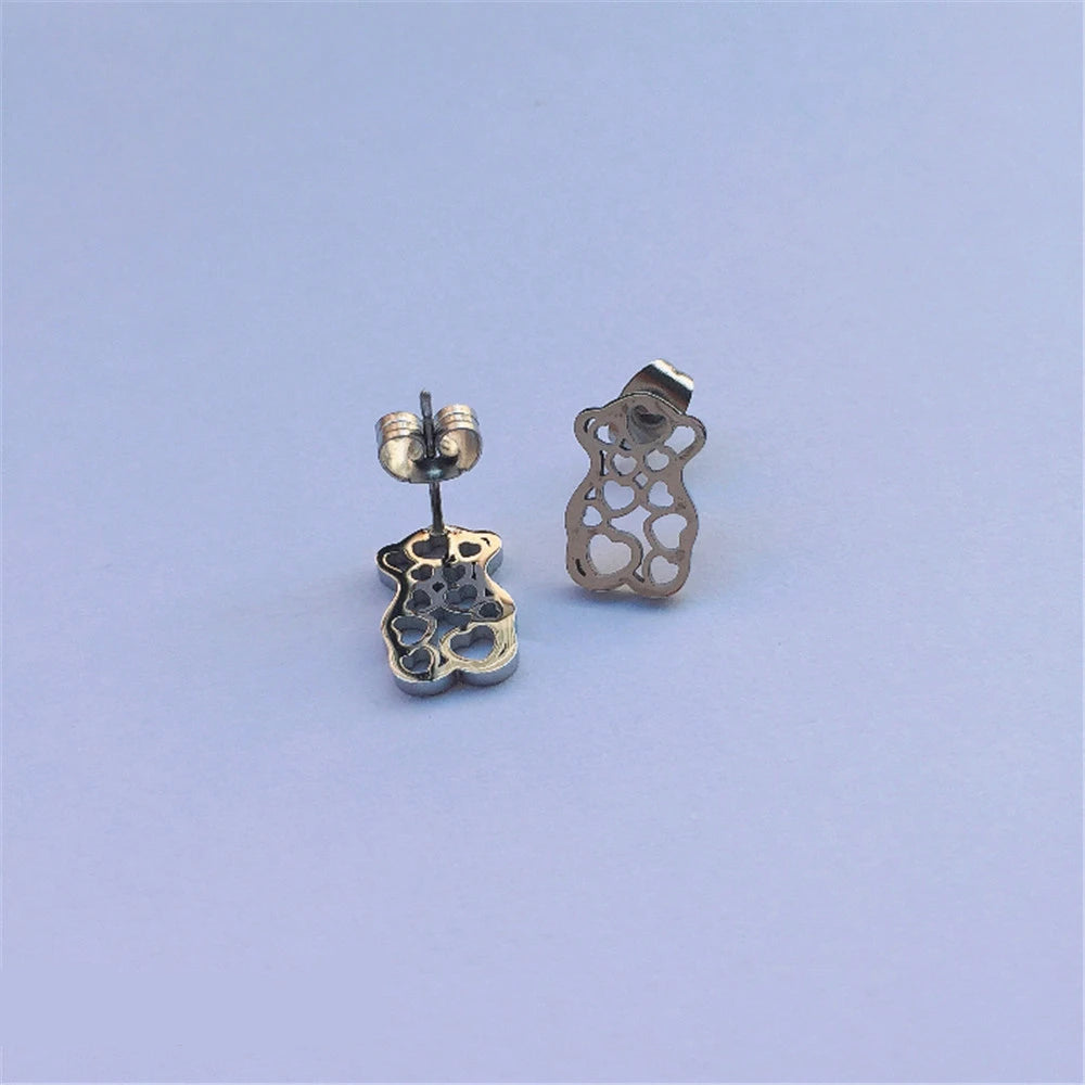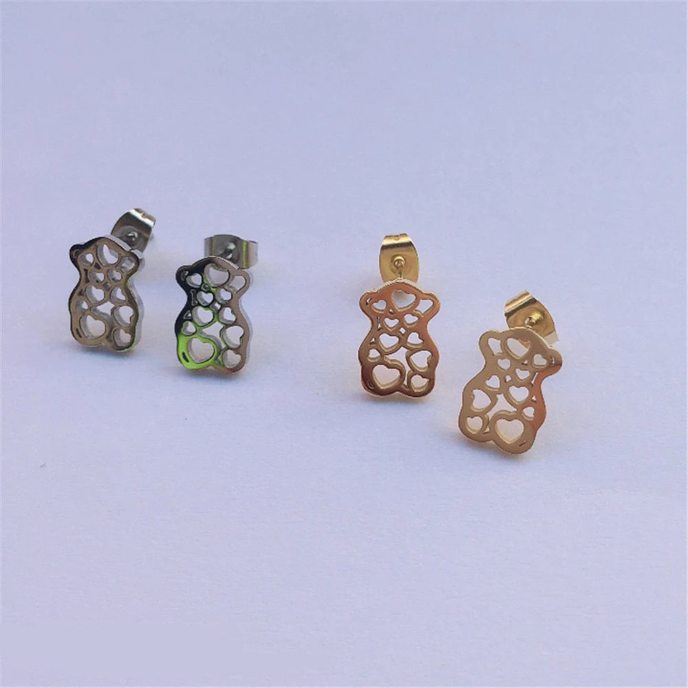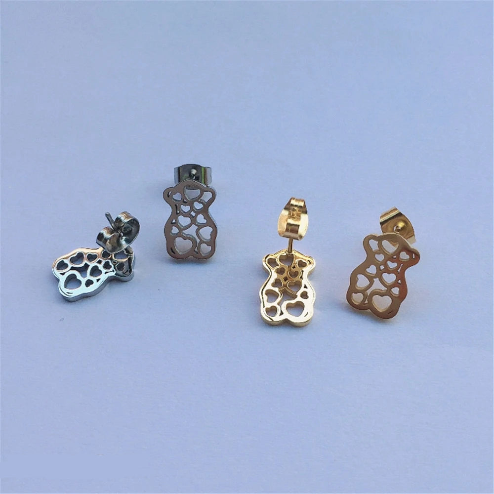 Modern Gold Bear Shape Stainless Steel Woman Earrings