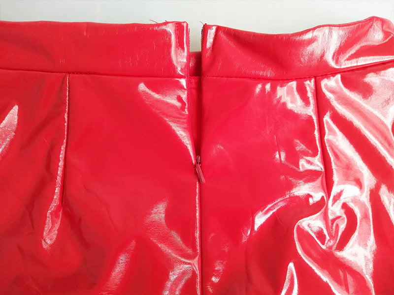 This faux leather mini skirt is a simple style that can easily be paired with a variety of outfits. The classic zipper closure makes it easy to take on and off. The lining material is viscose and bamboo fiber.