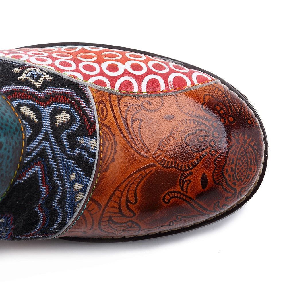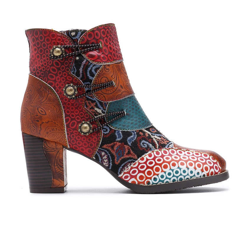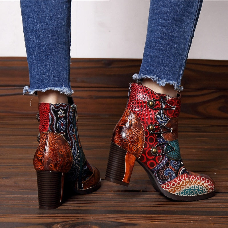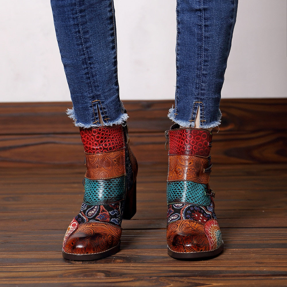 Vintage Genuine Leather Mixed Color Ankle Boots