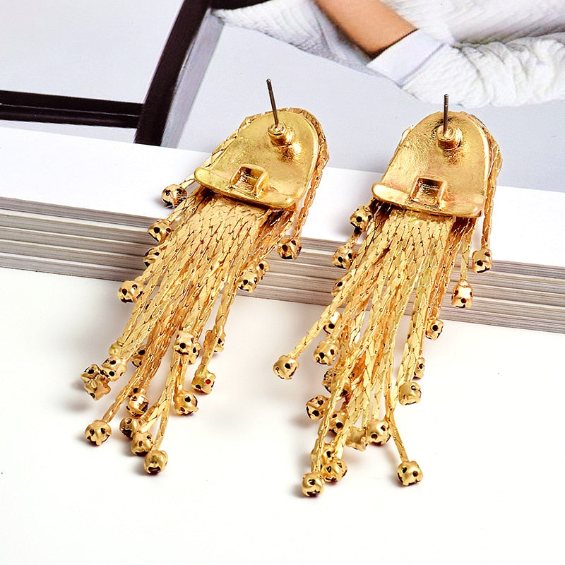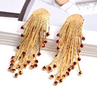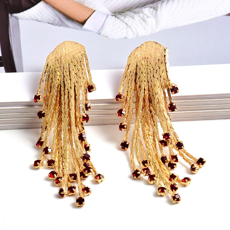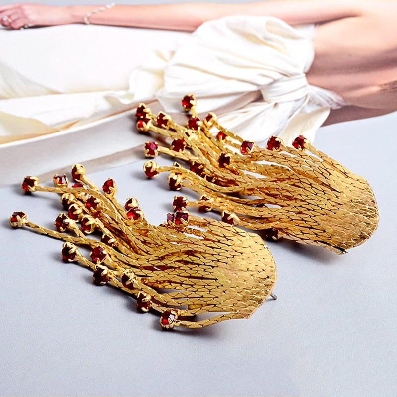 Chain Style Alloy Metal Drop Dangle Earrings with Red Rhinestone