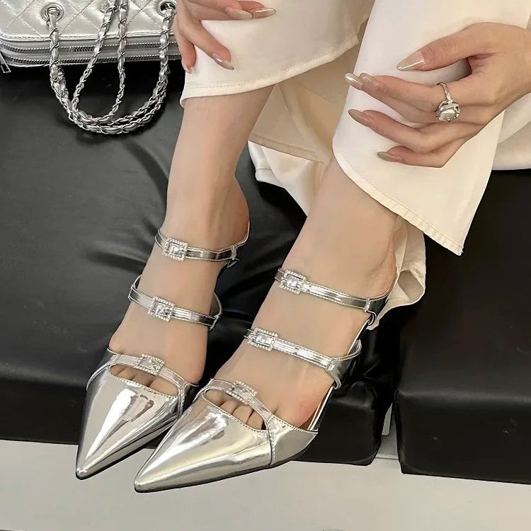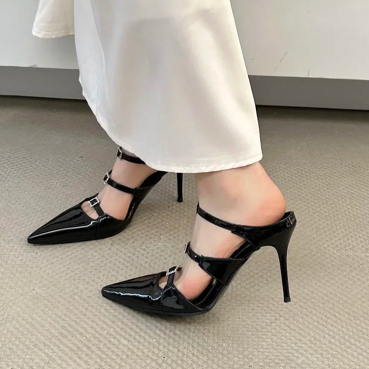 Pointed Toe Leather Mules Pump Shoes