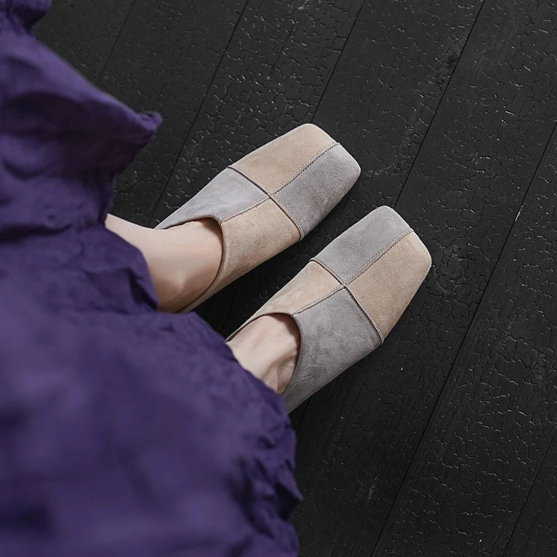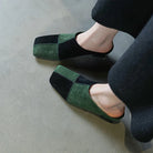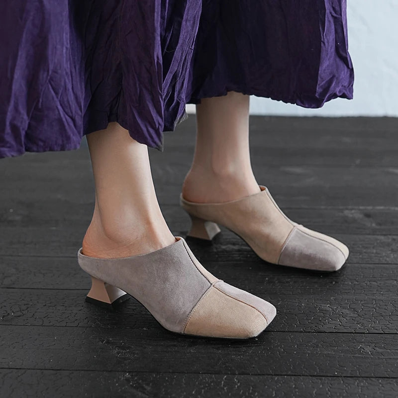 Suede Square Toe Mules Heels Shoes