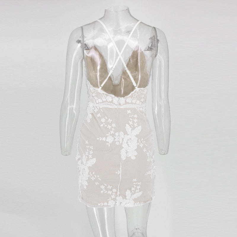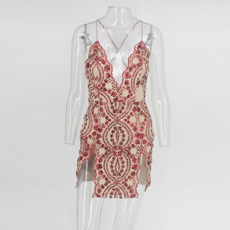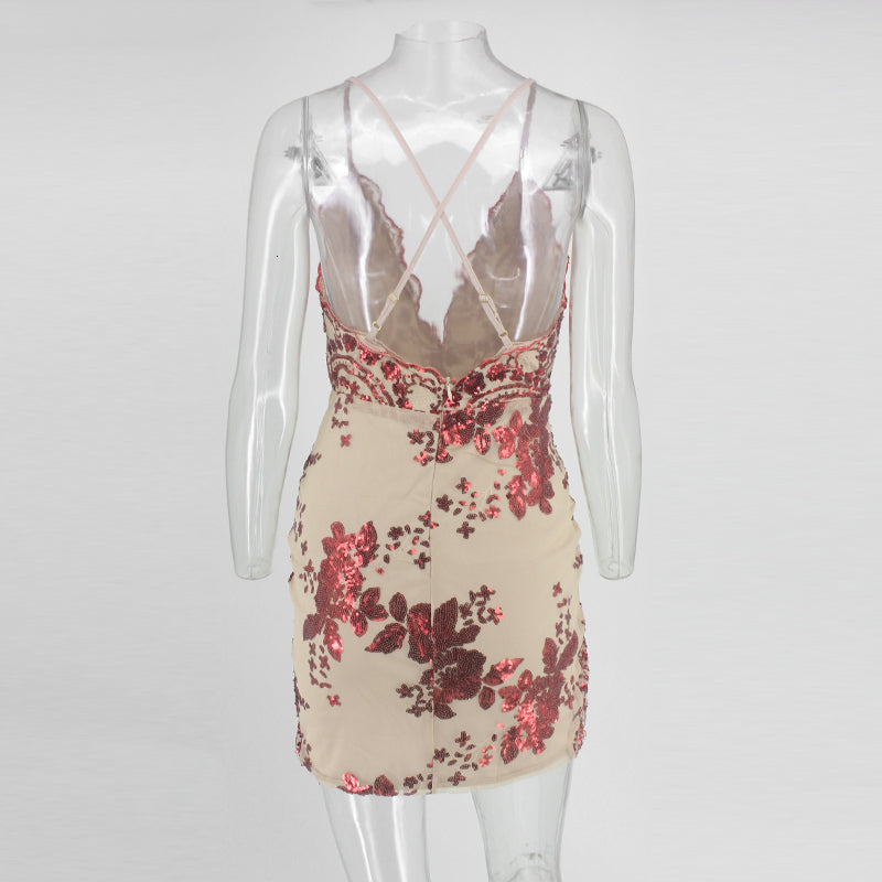 Sequined Mini Dress with Spaghetti Strap and V-Neckline