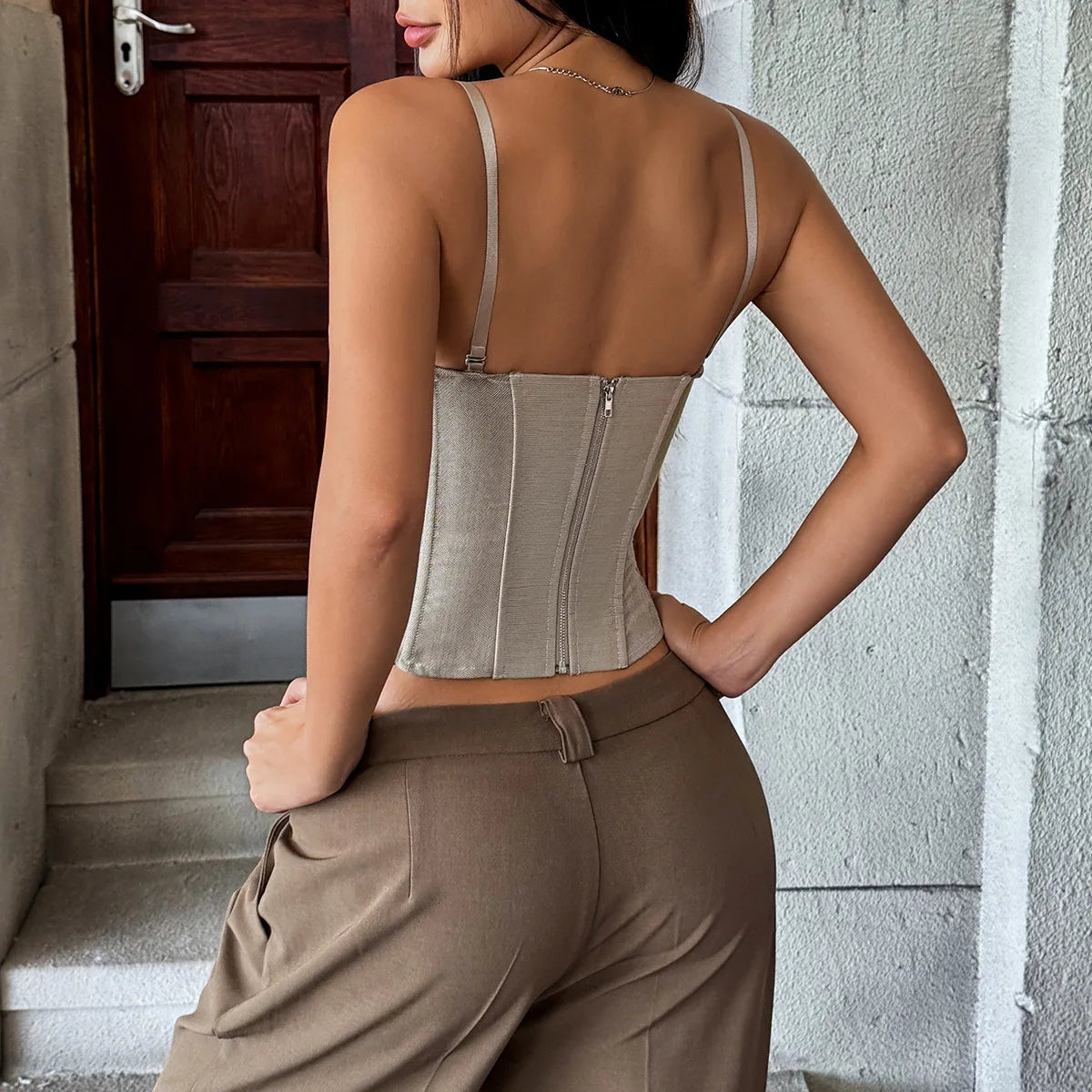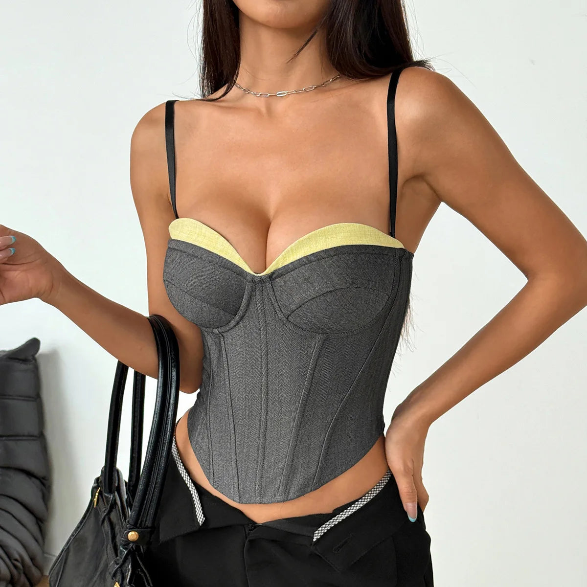 Elevate your vintage-inspired wardrobe with this Fashion Retro Splicing Bustier. Featuring bold color blocking and classic retro silhouettes, this piece combines nostalgic charm with modern edge. The structured bustier design offers flattering support and a defined waistline, perfect for layering or wearing as a statement top. Crafted with attention to detail, it's an ideal choice for anyone seeking timeless style with contemporary flair.