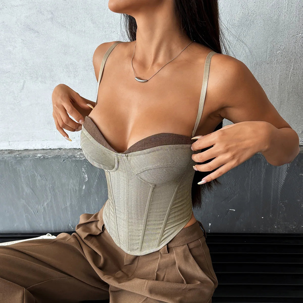 Fashion Retro Splicing Bustier
