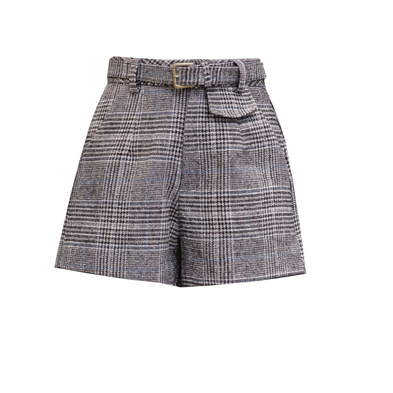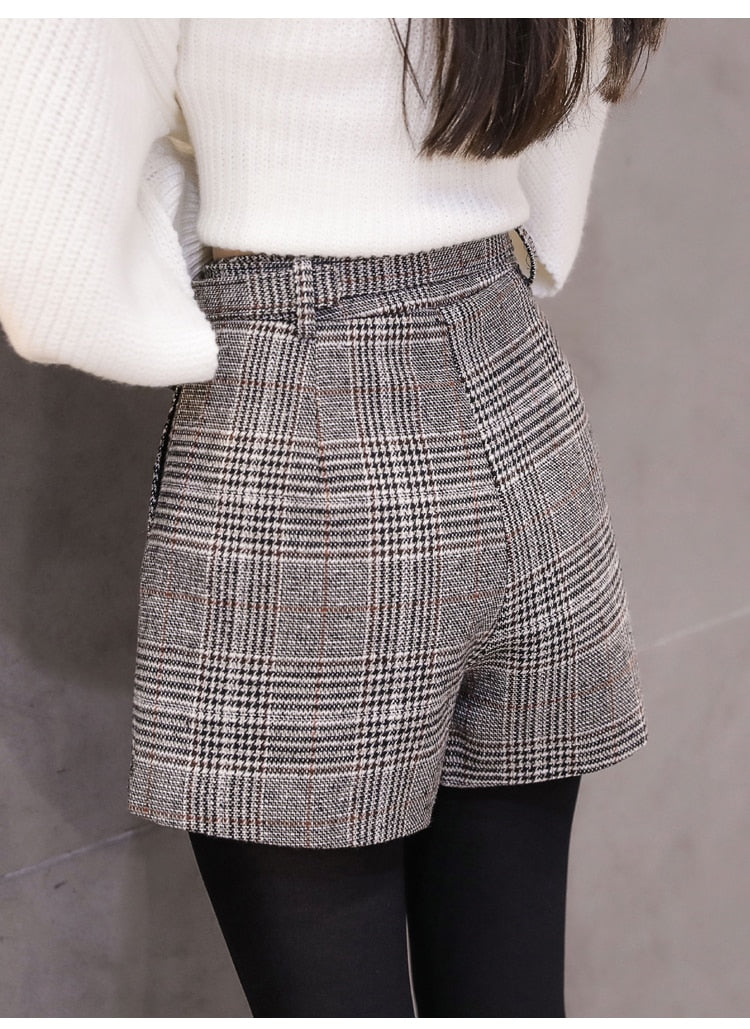 Polyester Acrylic on Plaid Zipper Fly Shorts
