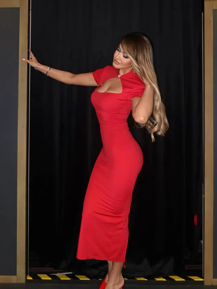 Elevate your wardrobe with this striking hollow-out slitted midi dress. Featuring intricate cutout detailing and a flattering midi length, this piece combines modern edge with timeless elegance. The strategic slits add movement and sophistication, making it perfect for evening events, date nights, or upscale casual occasions.