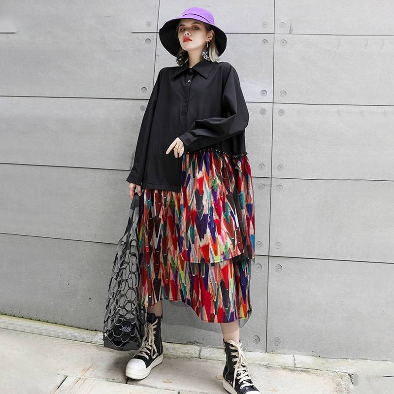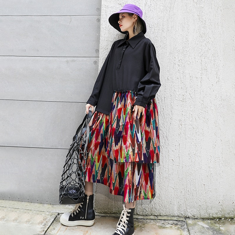 Cotton Polyester Print Pattern Full Sleeve Midi Dress