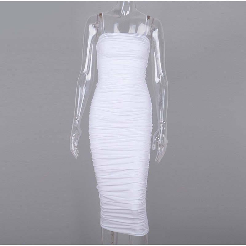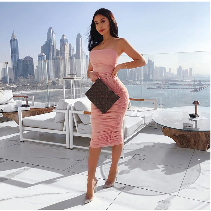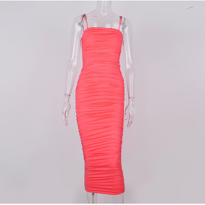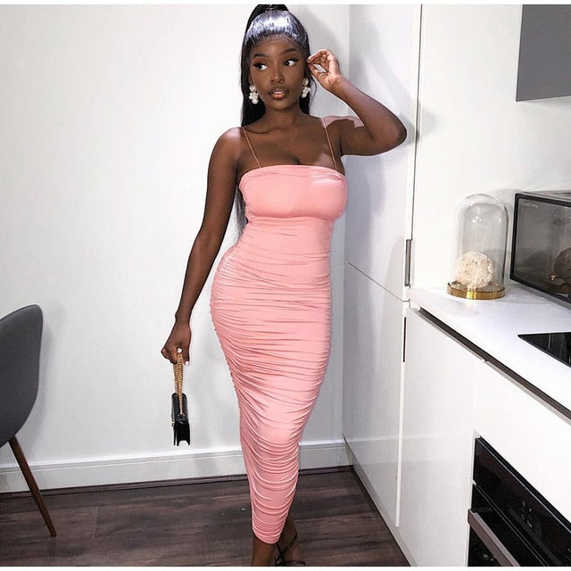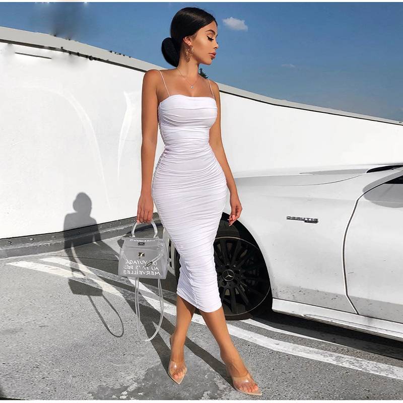 Polyester Calm Color Spaghetti Strap Sleeveless Bodycon