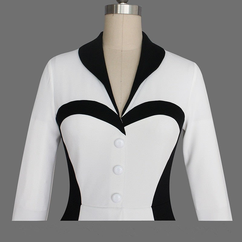 Cotton Polyester Spandex Patchwork Patterned V-Neck Midi Dress