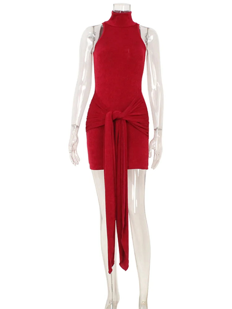 Elevate your wardrobe with this sleek Solid Halter Turtleneck Mini Dress. The classic halter neckline pairs perfectly with a cozy turtleneck, creating a sophisticated silhouette that works for both casual outings and evening events. The fitted mini cut flatters your figure while the solid color keeps styling effortless. Perfect for layering or wearing solo, this versatile piece transitions seamlessly from day to night.