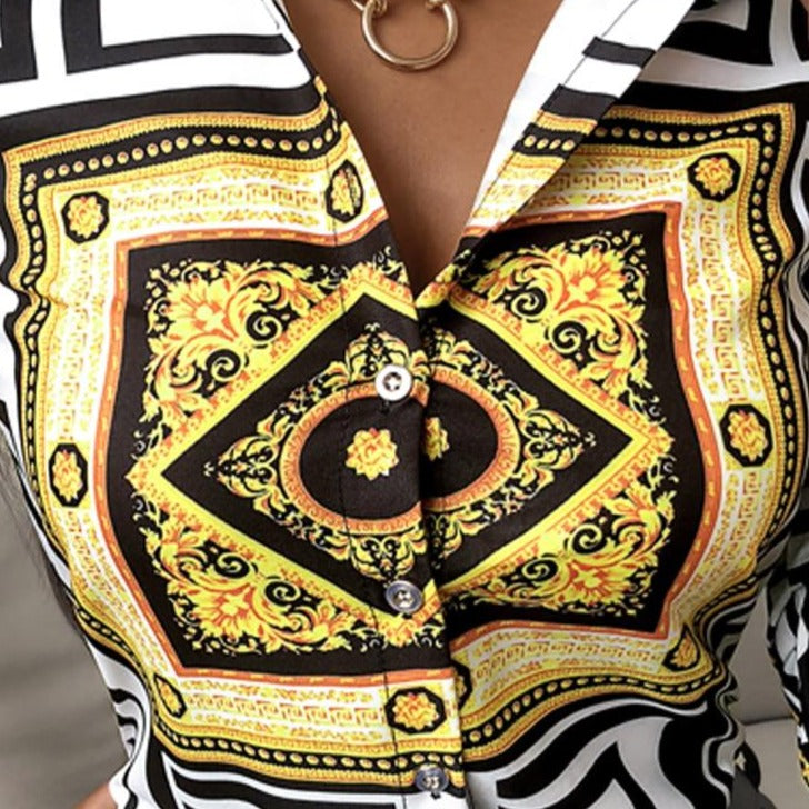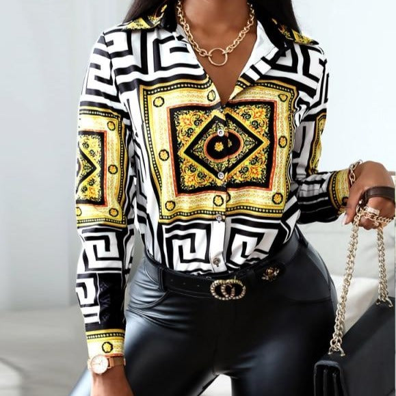 Geometric Patterned Shirt with Long-Sleeved and Turn Down Collar