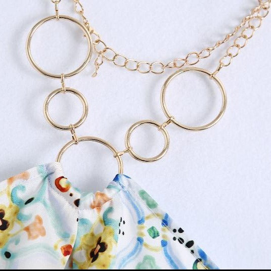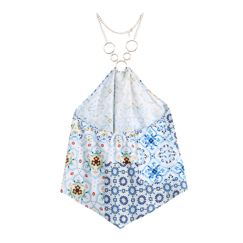Geometric Patterned Camisole Top with Chain Halter Strap