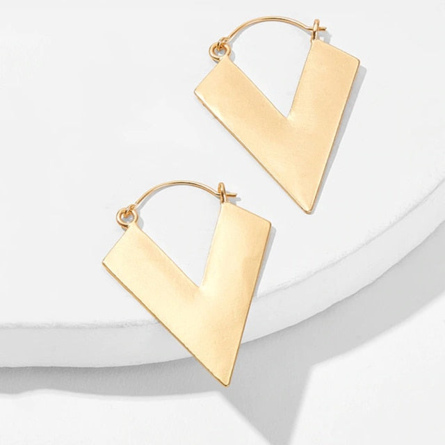 Triangle V-Shaped Drop Dangle Earrings Made From Alloy Metal