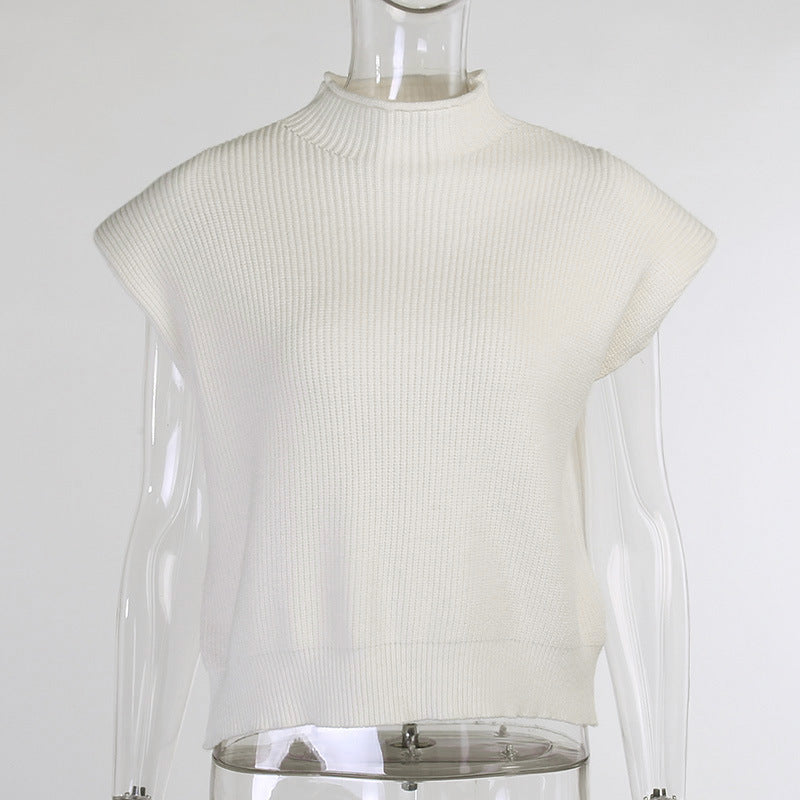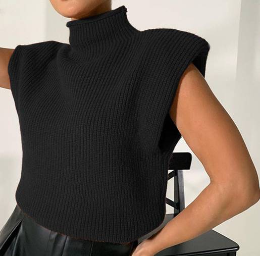Sleeveless Turtleneck Collar Pullover Knitted Sweater with Acrylic Material