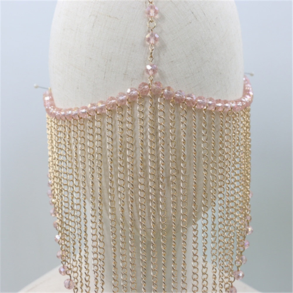 This sophisticated headpiece is the perfect accent for any outfit. Crafted from metal and adorned with a long tassel and black beads pendant, it adds a glamorous edge to any look. Its lightweight construction makes it comfortable yet stylish, allowing you to make a statement without sacrificing comfort.