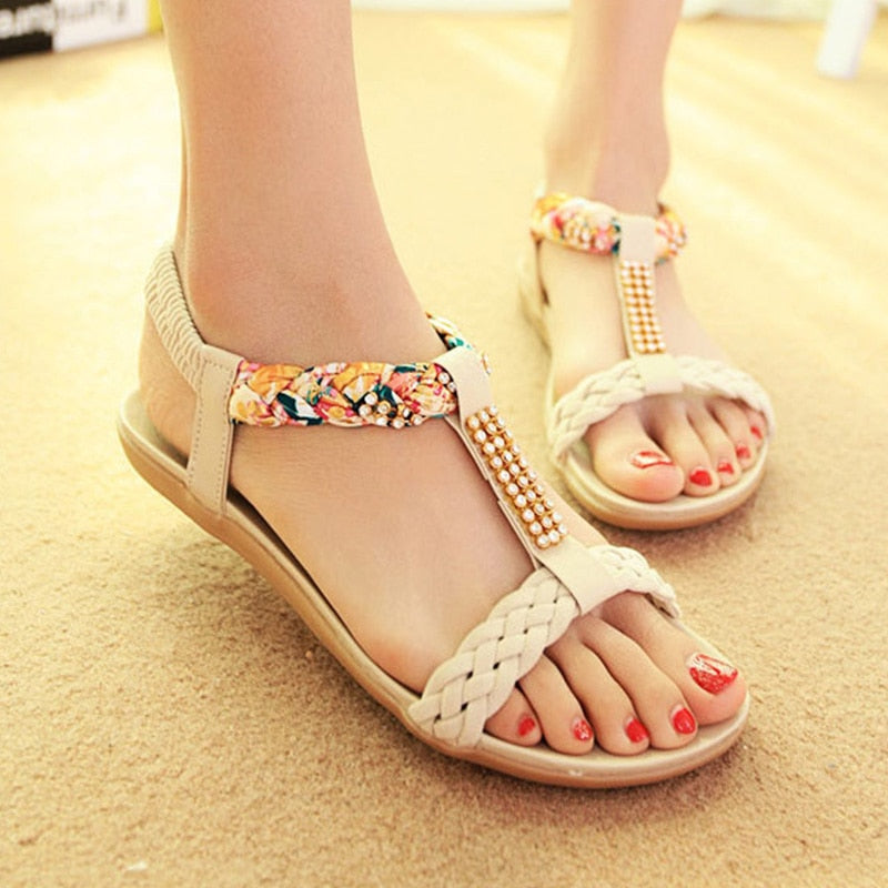 Bling Floral Rhinestone T-Strap Flat Sandal