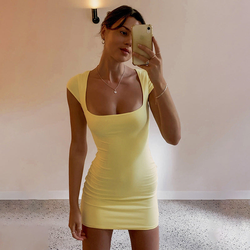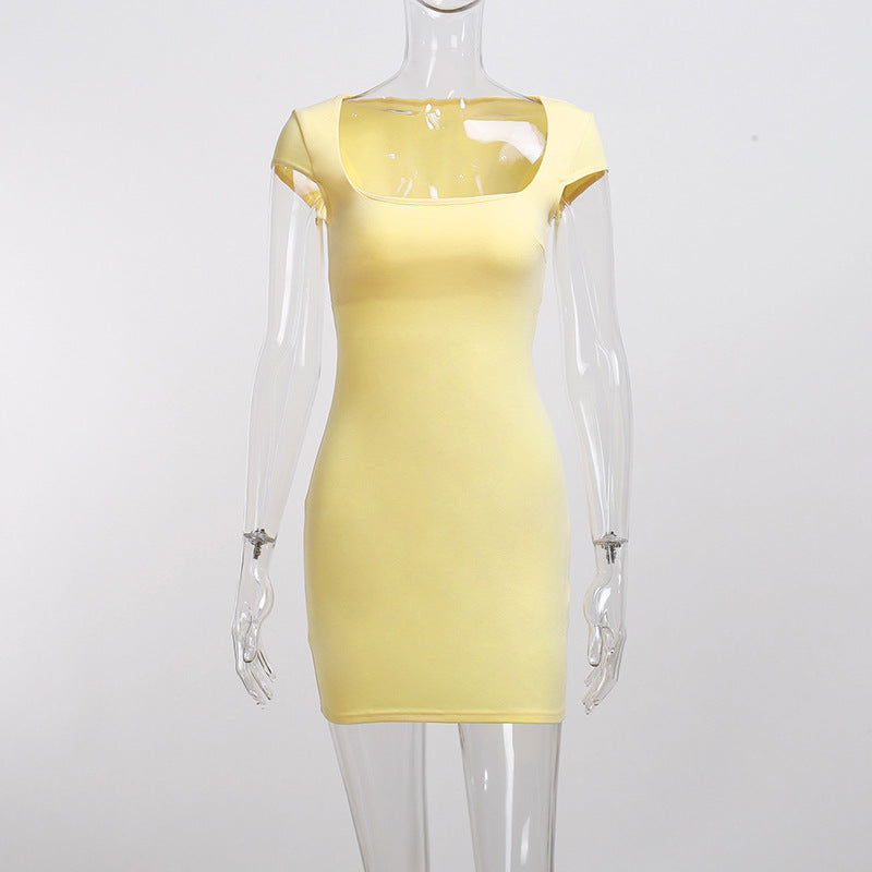 This casual, lightweight mini dress is perfect for spring and summer. The short sleeve design and square neckline provide a modest look. It is made of a comfortable polyester fabric that feels light and airy. The color is solid and the design is versatile enough to be worn for both casual and formal occasions.