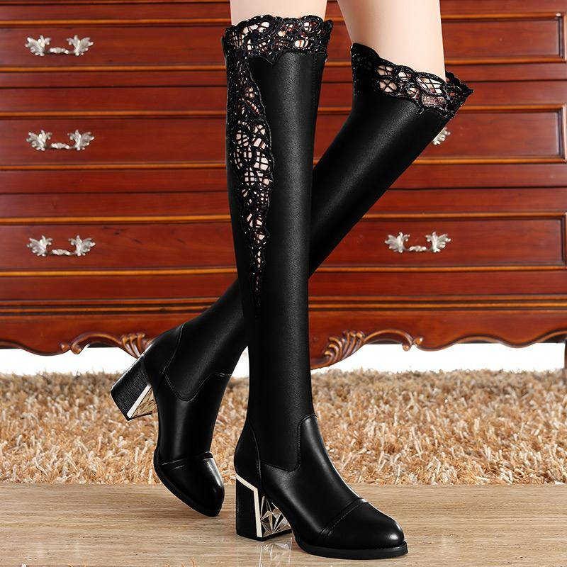 These stylish women's boots are an easy way to add some fun to your look. The versatile design is the perfect way to update your wardrobe. Wear with a variety of outfits to make a stylish statement. This pair of fashionable women's boots will have her looking stylish and comfortable. Featuring a square heel and floral lace decoration, this basic design is perfect for dressing up or down.