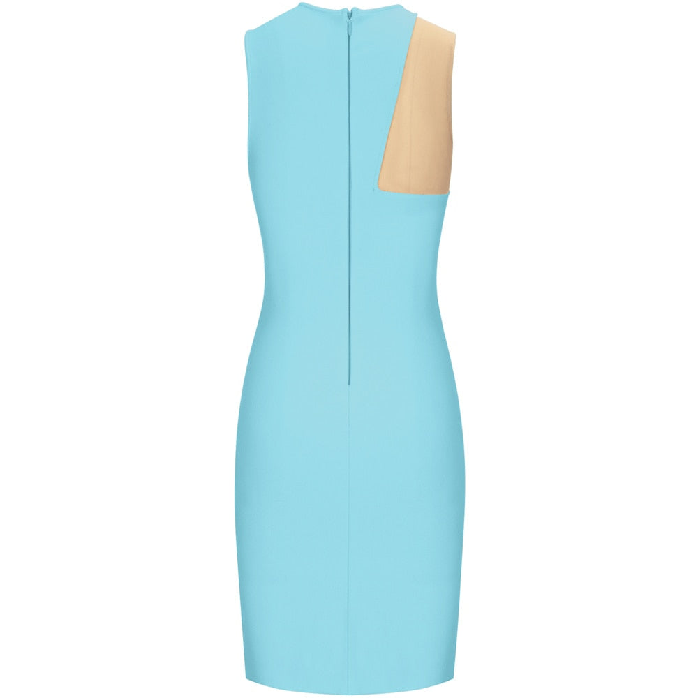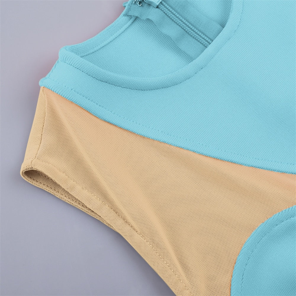 Solid Sleeveless Mini Dress with O-Nech Collar and Zipper Closure