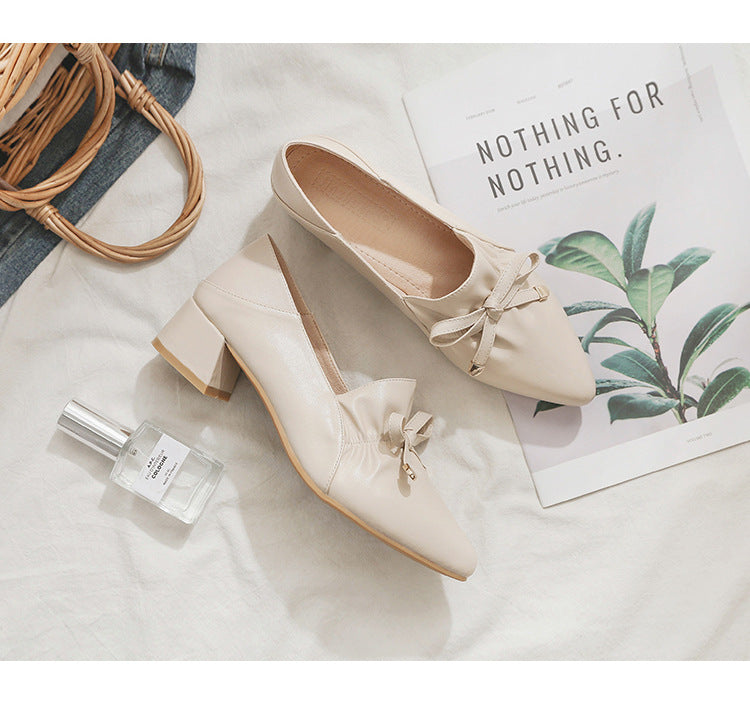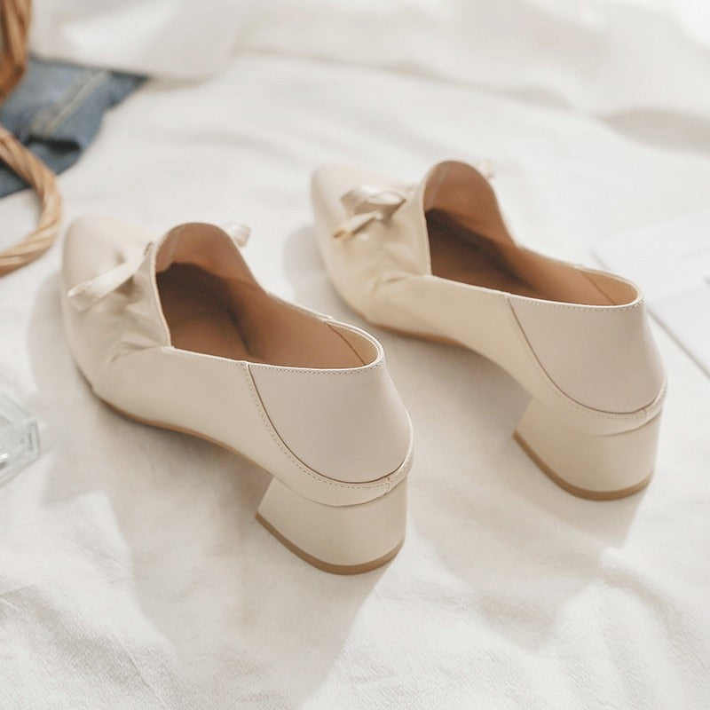These pump shoes with their square heels are perfect for a walk in spring. The soft beige color complements the feminine design. It is also easy to match with your favorite day dress. These shoes will be an instant favorite in your collection.