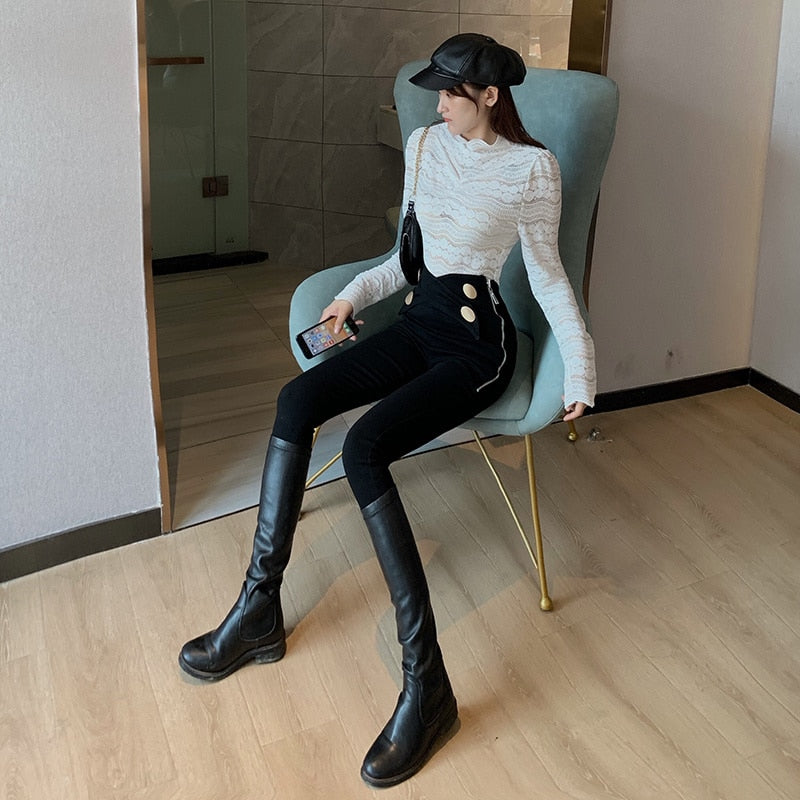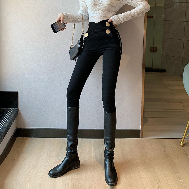 This trendy pair of women's pants is the ideal choice for everyday wear. Available in a classic solid black color, this versatile cotton pair is perfect for work, play, or going out. Easy to pair with a variety of tops and styles, you can wear these pants with confidence.