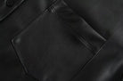 This leather shirt is great for any time of the year. The rich black of this leather shirt has an understated style that you can also wear as outer.