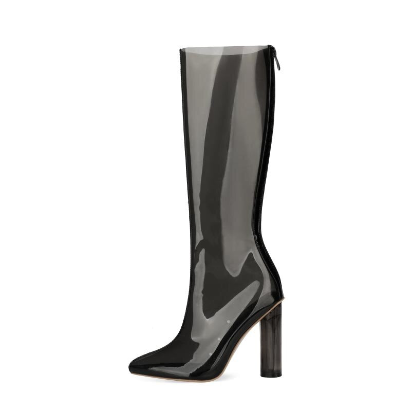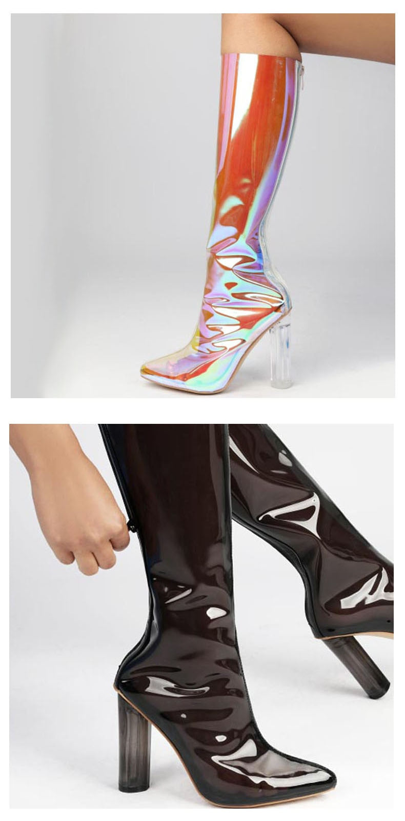 These fashionable women's boots have a pointed toe and stylish cut which will add a touch of class to any outfit. The striking, eye-catching style is perfect for any occasion. The PVC material is great for all-day comfort so she can enjoy her day worry free. Great for any season, these knee-high boots can be worn with skirts, dresses, and jeans.