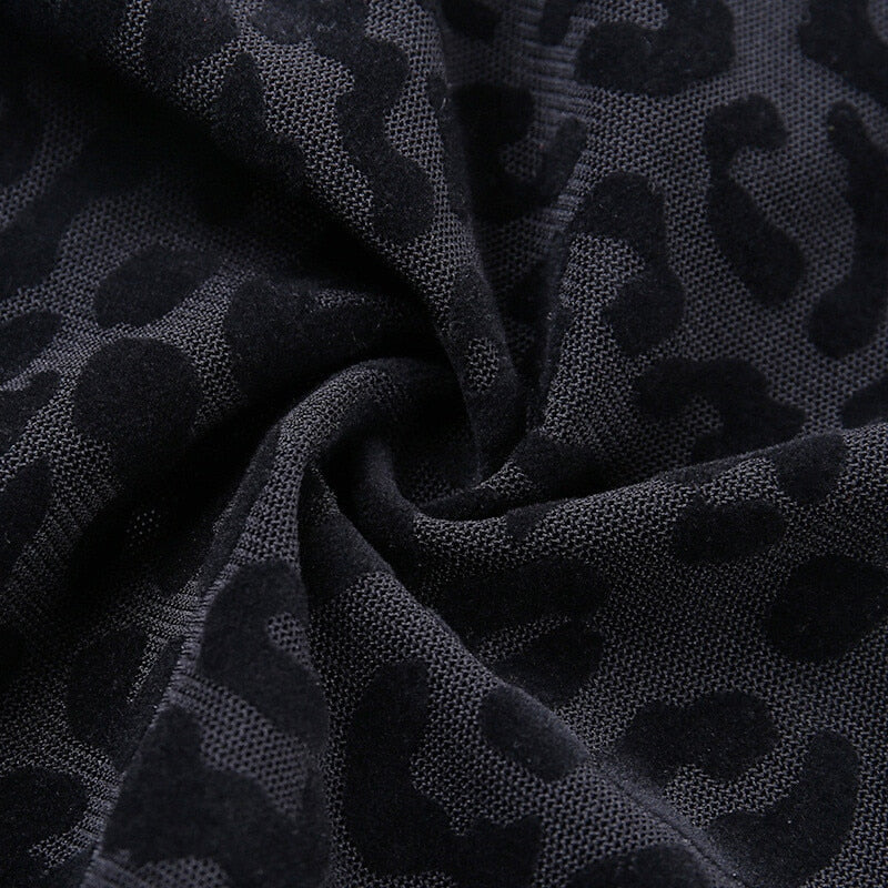 Black Leopard Mesh See-Through Patchwork Long Sleeve Bodysuit