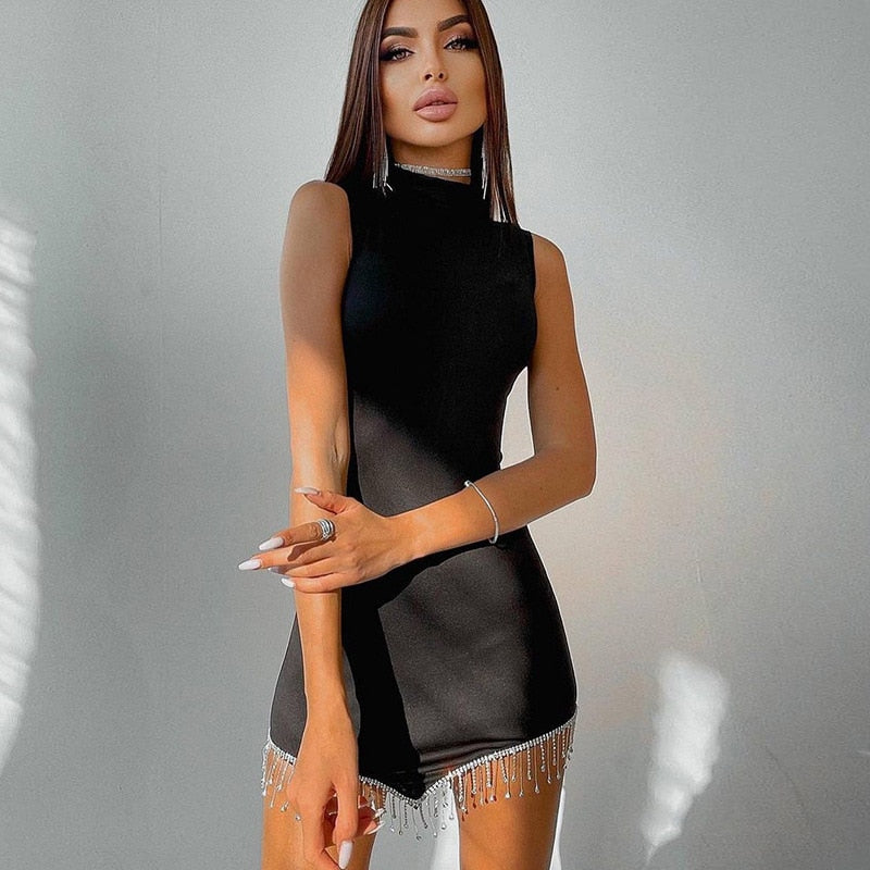 This mini dress is perfect for any occasion. Constructed from lightweight polyester, the dress features a sleeveless design with a solid print and tassel detail. The breathable fabric and lightweight design provide comfort and freedom of movement for all-day wear.