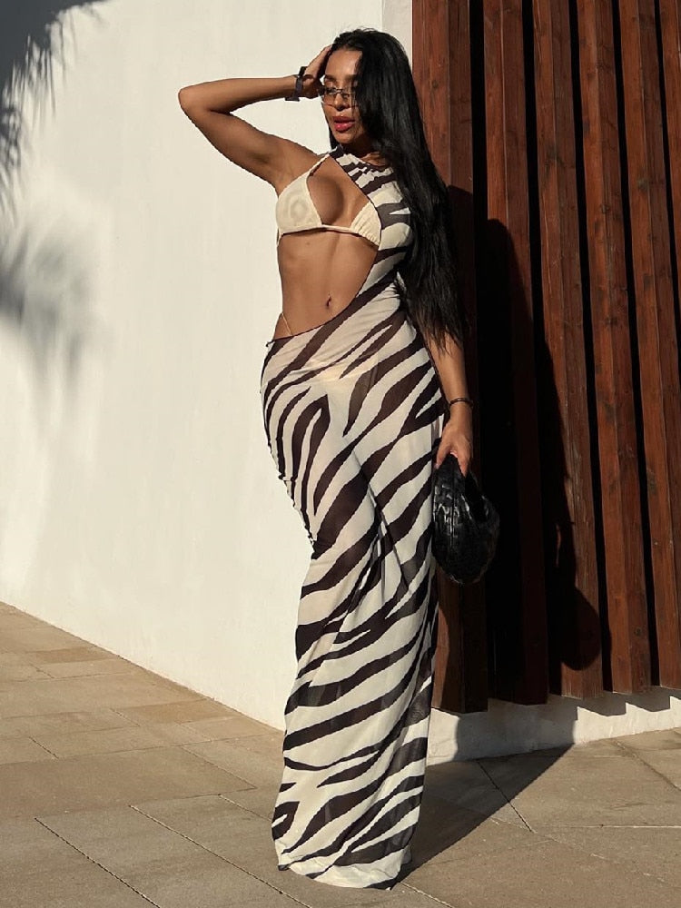 Style your next adventure in the Can't Believe You're Here Maxi Dress. This stretchy slim-fit dress features a captivating zebra pattern that is complemented by beautiful hollow outs for a modern flair. Constructed with a blend of PVC and Spandex, this knee-length beauty with a pullover closure ensures an ultra-comfortable fit.