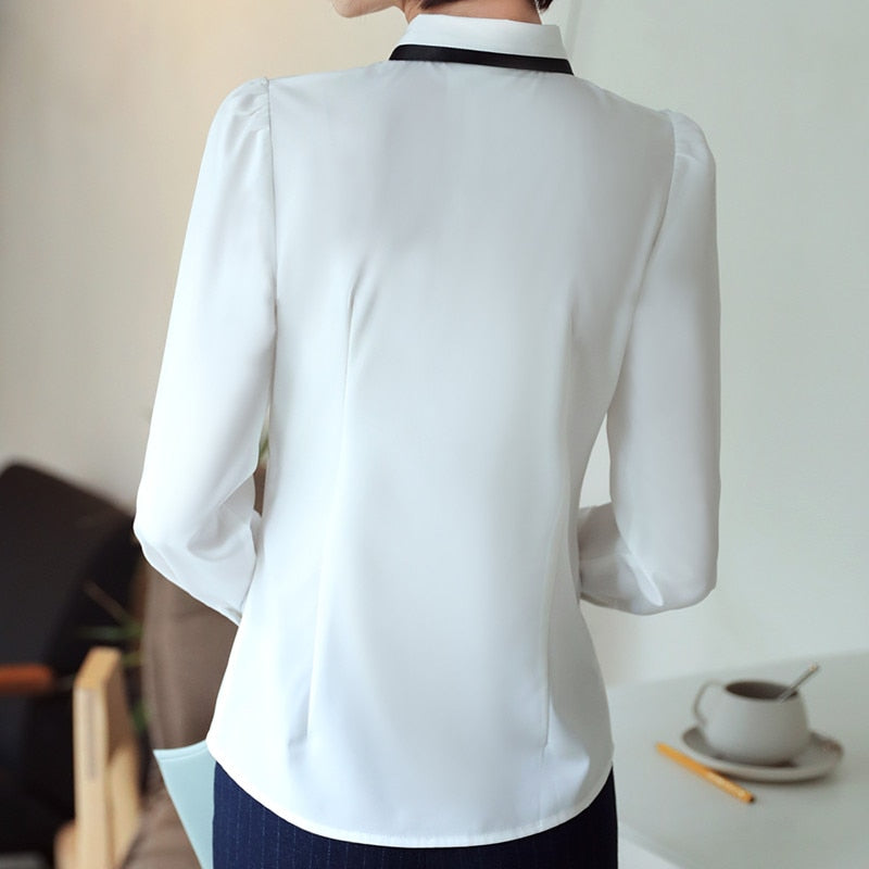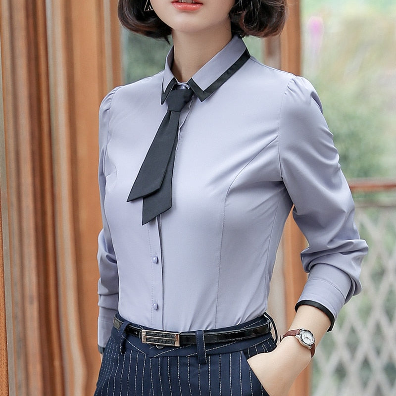 A stylish shirt that is perfect for any occasion. This is a wonderful way to add a touch of elegance to your look for the day. The soft chiffon material and tie decoration will help you stand out from the crowd.