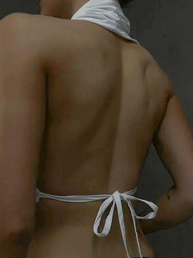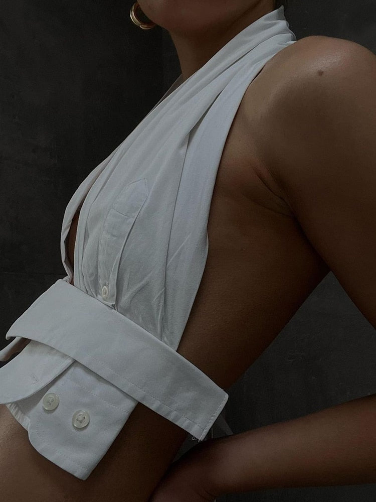 She'll love the look and feel of this casual crop top that is designed to flatter a woman's curves. A flattering sleeveless design that is made from soft cotton fabric is a practical and comfortable option. The halter neckline and stylish backless design ensure she looks her best in any situation. The subtle buttons add a touch of refined style to the simple and effortless silhouette. A simple and effortless way to enjoy the summer in fashion-forward style.
